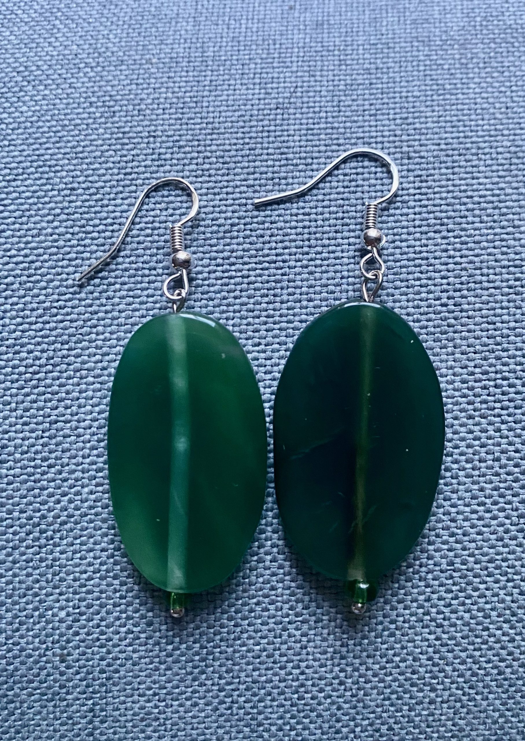 Oorbellen met groene kwarts kralen en zilveren (925) oorhaakjes.
